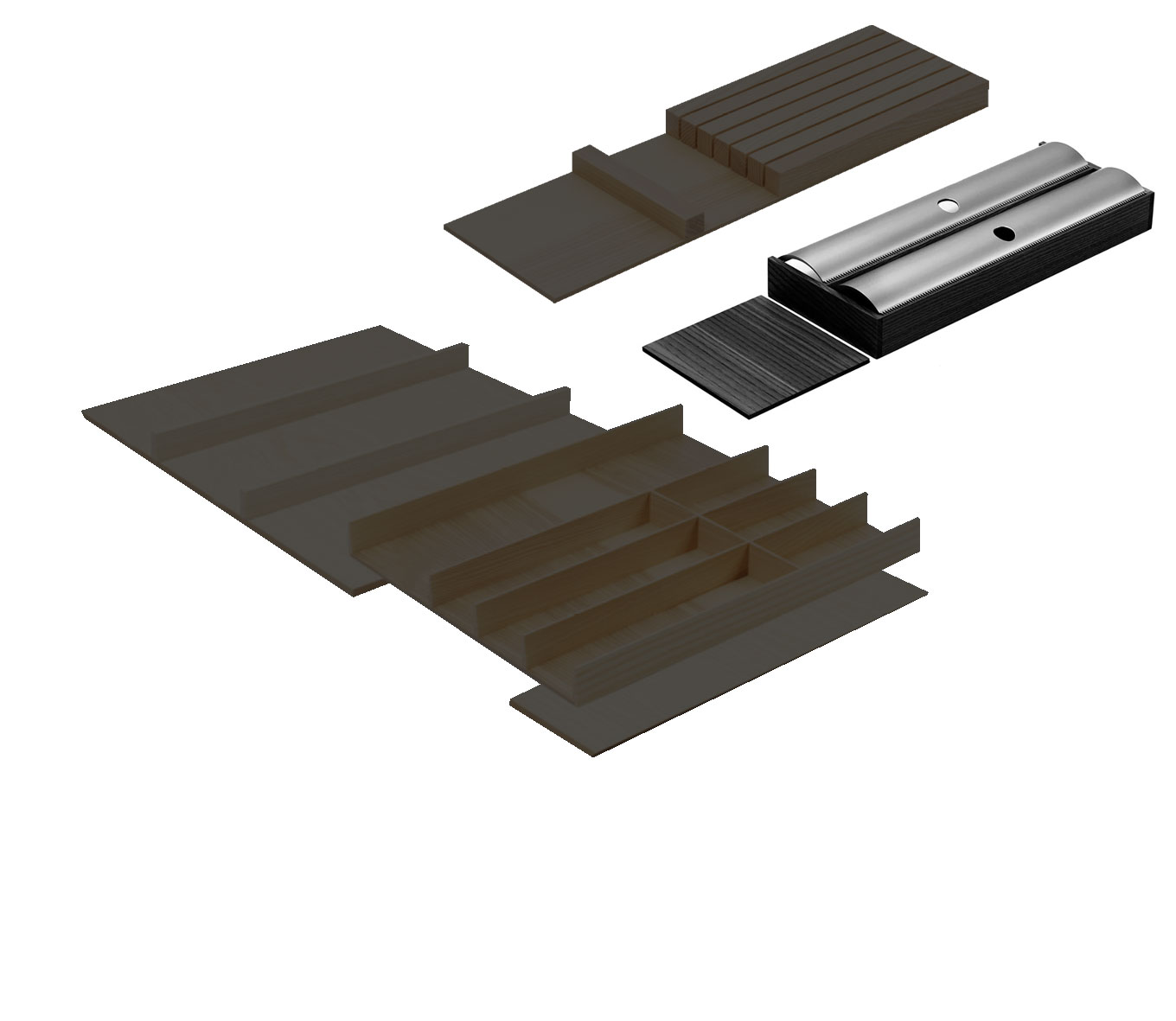 —КОМПЛЕКТ лоток + держатели для фольги и для ножей, ФайнЛайн Линик 800-900 мм, глубина 500 мм, цвет ЯСЕНЬ черный Kessebohmer