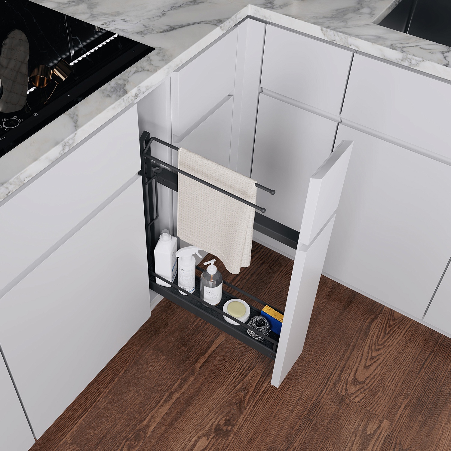 Бутылочница №15 для полотенец H 592 фасад 150 мм 3D
