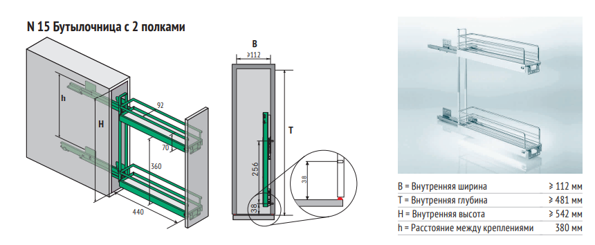 Бутылочница 150 мм 3D с 2 полками Арена КЛАССИК цвет ТИТАН Kessebohmer | официальный магазин