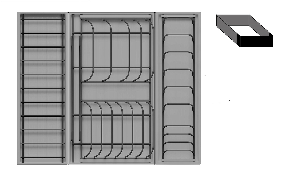 • 1 большой модуль для посуды + 1 малый модуль с решеткой + модуль для столовых приборов