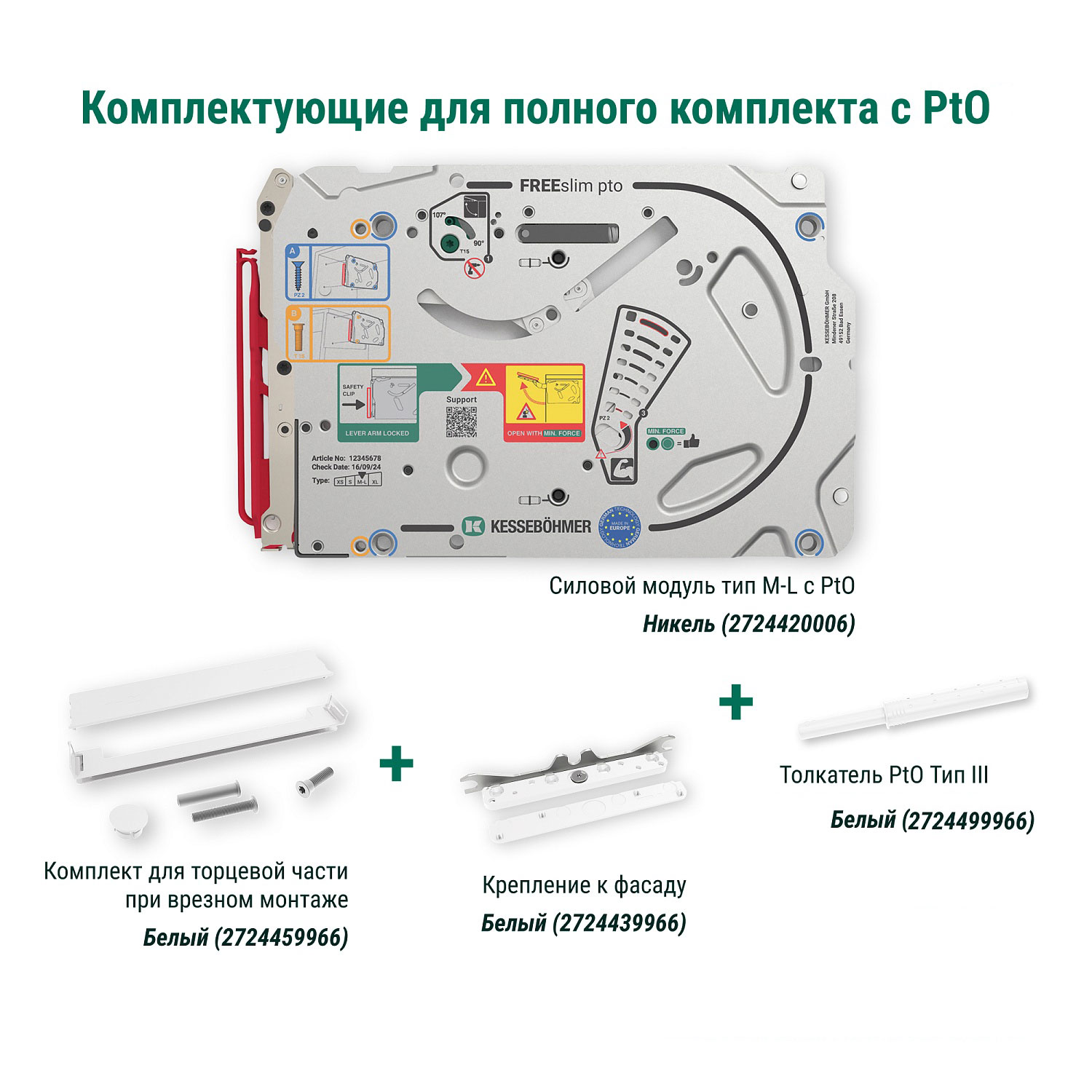 Полный комплект подъемного механизма ФриСлим ФЛАП c толкателем PTO тип III для врезного монтажа, цвет БЕЛЫЙ Kessebohmer | официальный магазин