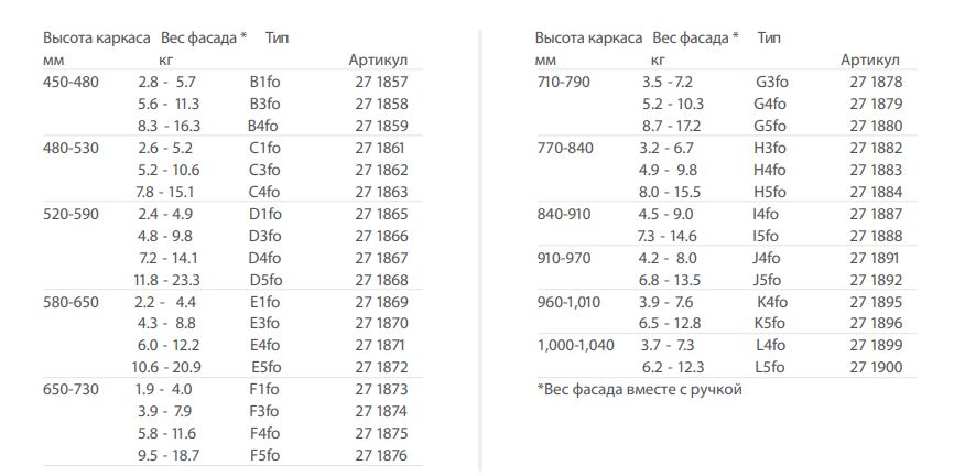 Вес фасада (кг) 4.8-9.8