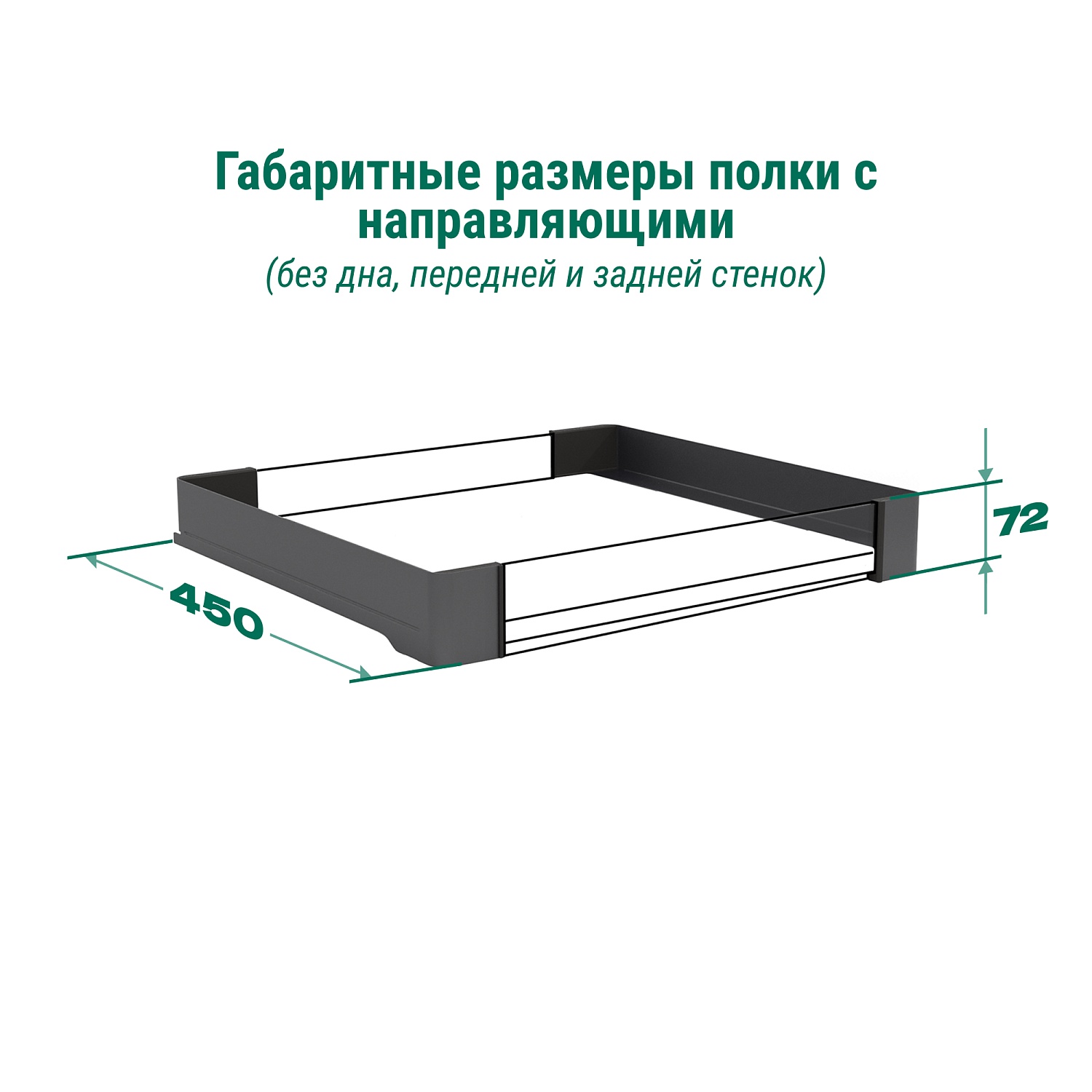 Полка внутренняя выдвижная 450 мм, Конеро, H 72, без дна, передней и задней стенок, 1 шт, цвет ЧЕРНЫЙ Kessebohmer | официальный магазин