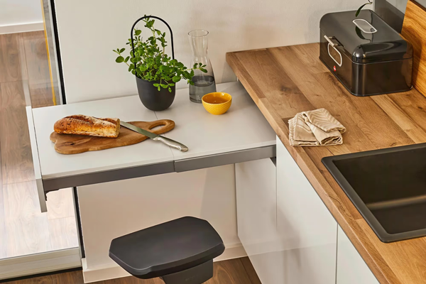С выдвижным столом TopFlex Kesseböhmer кухня преображается в мгновение ока. Стол полюбился нашим покупателям, и это заслуженно!
